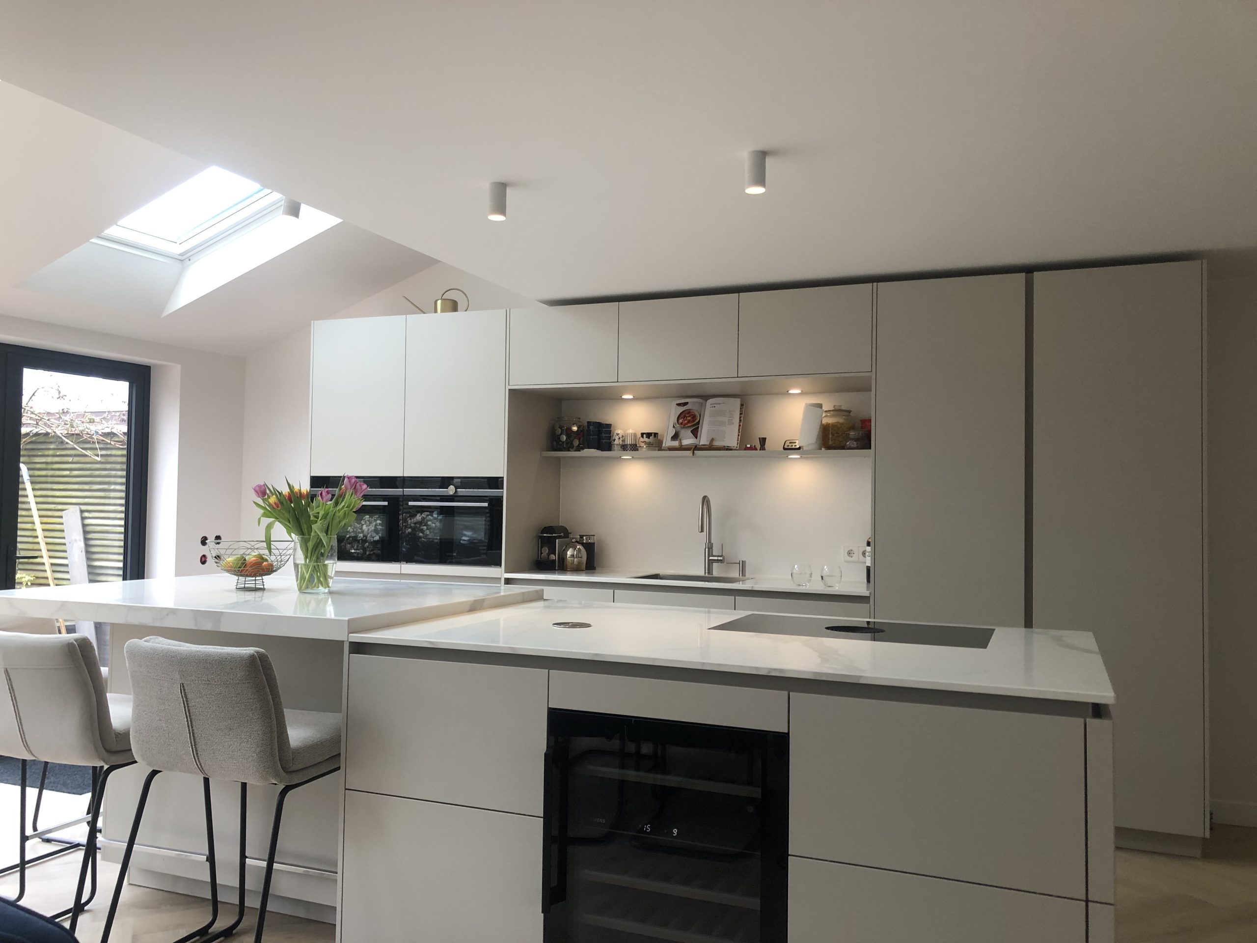 De keuken is het centrale punt in het huis van David en zijn vrouw. Ze hebben alles omgegooid. Waar eerst een grote leefruimte was, zit nu de (grote) woonkeuken. Het centrale punt in huis, waar ze veel en graag zitten. Aan tafel en/of aan het kookeiland. Met elkaar, met vrienden. “Een mooie plek straks ook voor de kinderen als ze ouder zijn en met vrienden willen chillen”, zegt David.